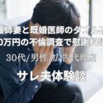 既婚医師と妻のダブル不倫。調査費用180万で得た証拠とその後の対応。サレ夫体験談【36歳/男性/広告代理店】